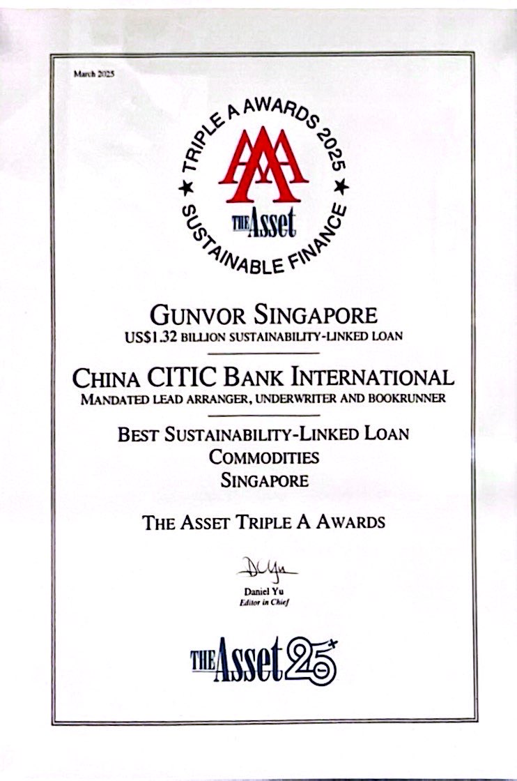 《财资杂志》The Asset Triple A Awards 2025「新加坡最佳可持续发展挂钩贷款 - 大宗商品行业」