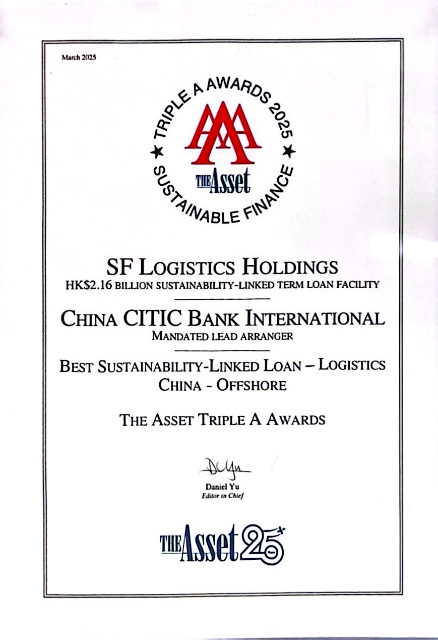 《财资杂志》The Asset Triple A Awards 2025「中国离岸最佳可持续发展挂钩贷款 - 物流行业」