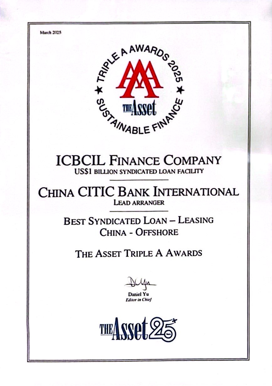 《财资杂志》The Asset Triple A Awards 2025「中国离岸最佳银团贷款 - 租赁行业」