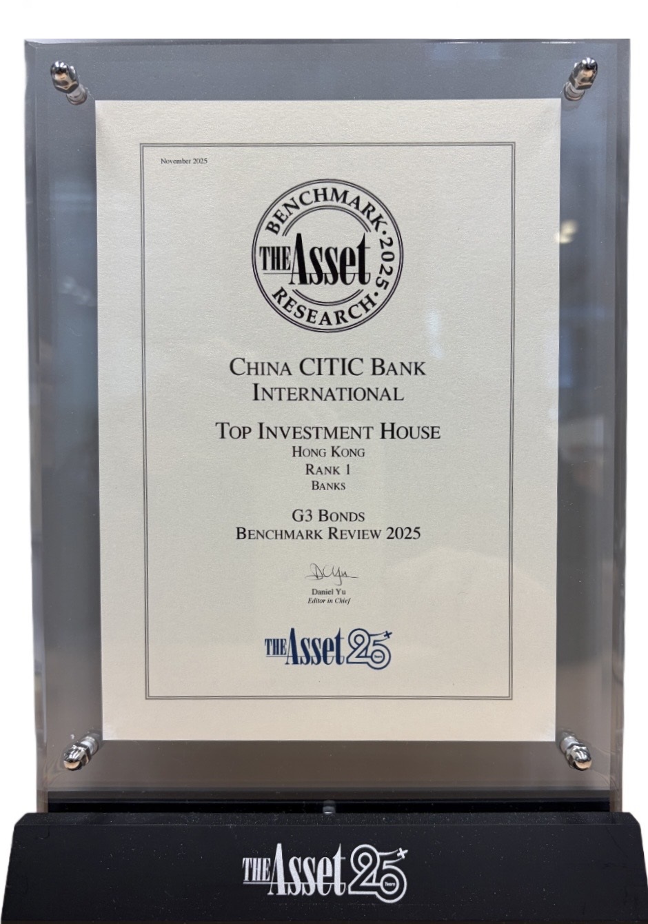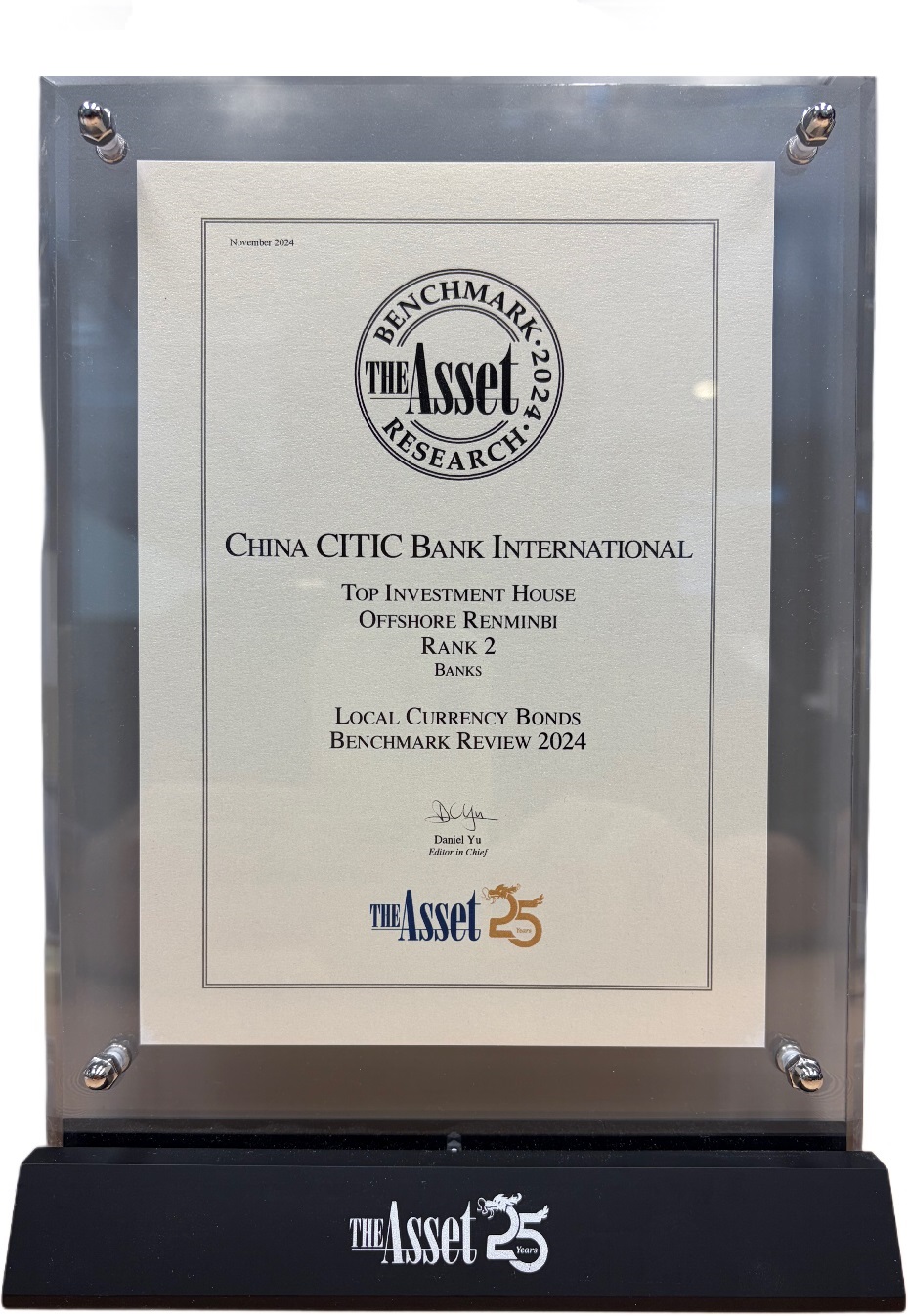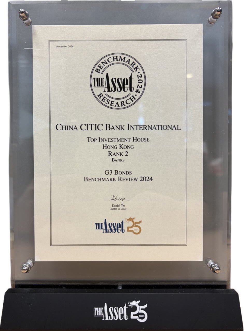 财资基准研究奖G3债券亚洲市场评选「顶尖投资公司 -中国/香港商业银行(第2名)