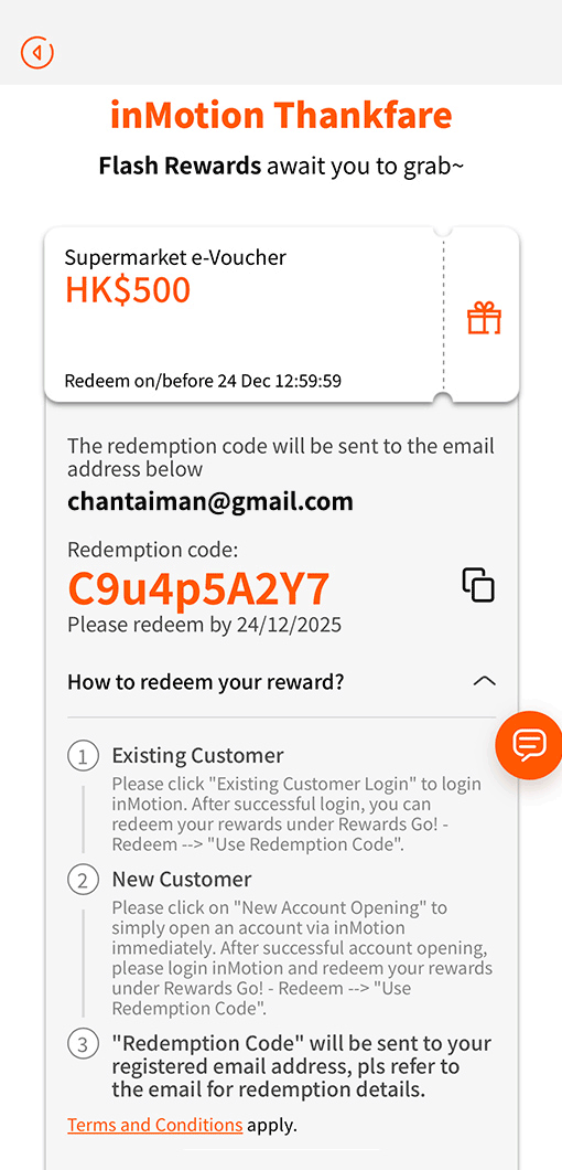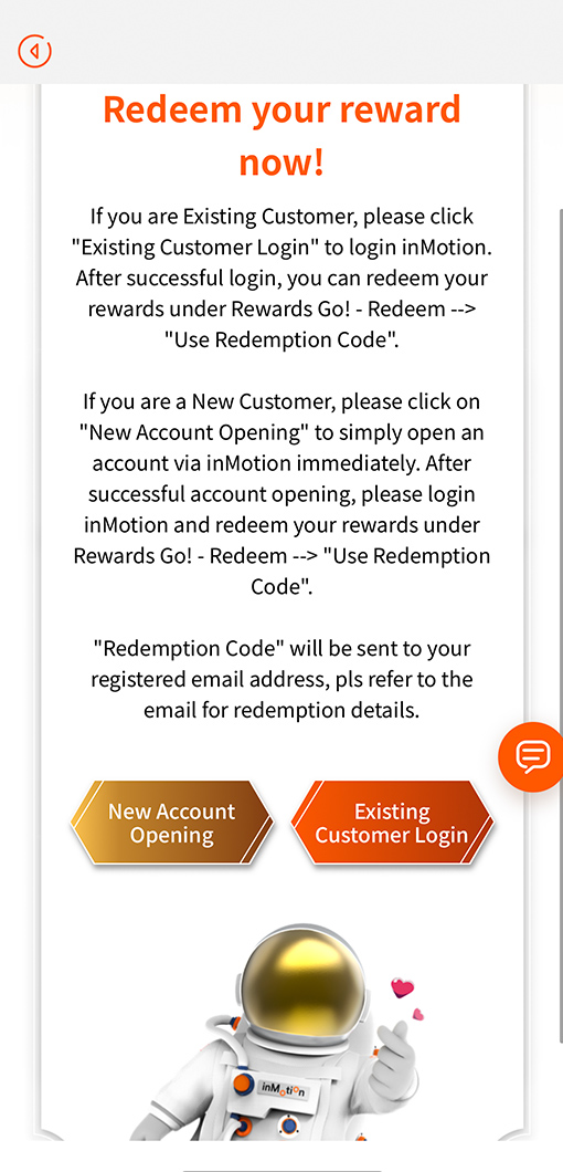 2 If you are existing customer, please visit inMotion “Rewards Go!– Redeem” after login in. If you are new customer, please open account via inMotion now to redeem the reward.