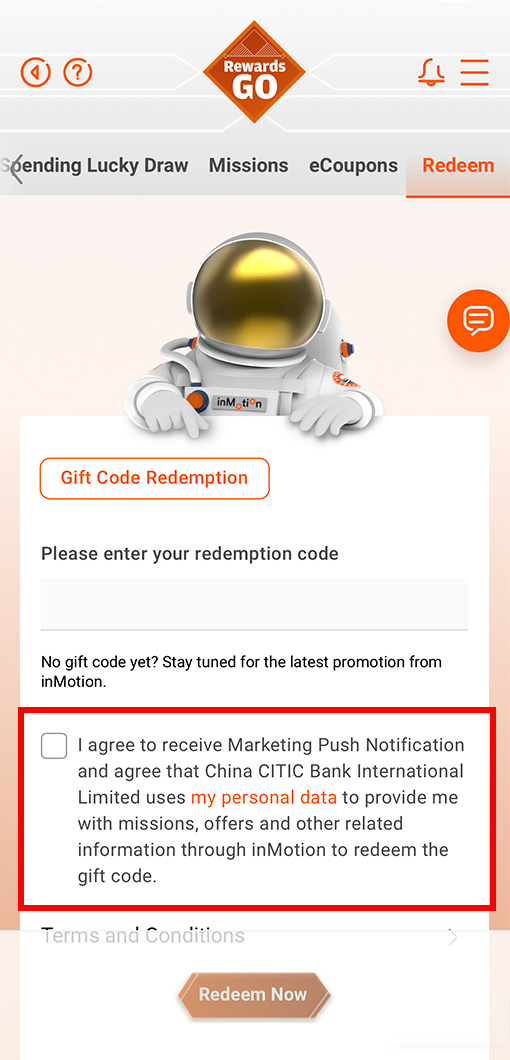 4 Remember to agree on receiving the push notification for redemption completion.