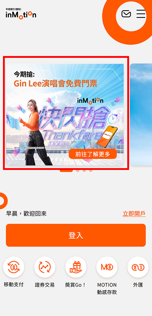 3 登入前,按「inMotion快閃搶」推廣橫幅,進入活動頁面