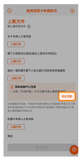 你可向我們分享你於其他銀行的出糧戶口資料,以取代上載薪酬證明文件。我們在審批申請時按實際情況或會要求你補充額外薪酬證明文件。