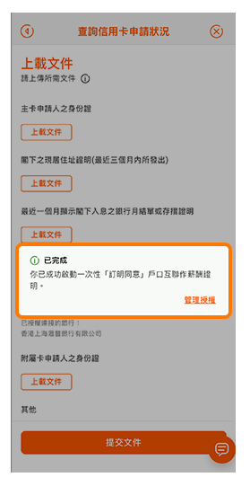 - 5 授權完成後,在inMotion上繼續申請,無需上載薪酬證明文件!