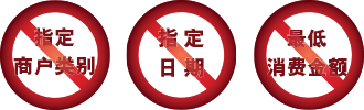 | + | 高达5%额外现金回赠只适用於指定签账期内每月累积认可签账满HK$2,000或以上,会员可享每月最多HK$100额外现金回赠,并於整个指定签账期内享最多HK$400额外现金回赠。 |