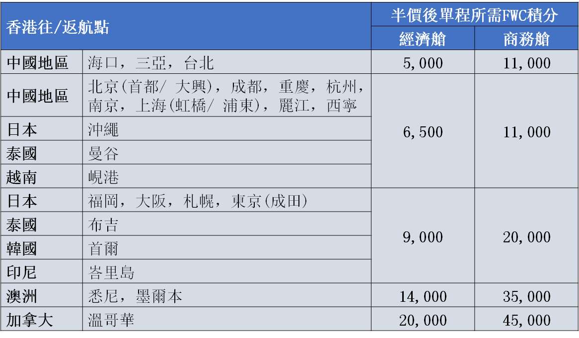 尊享香港航空不定期推出的5折FWC積分升級商務客位