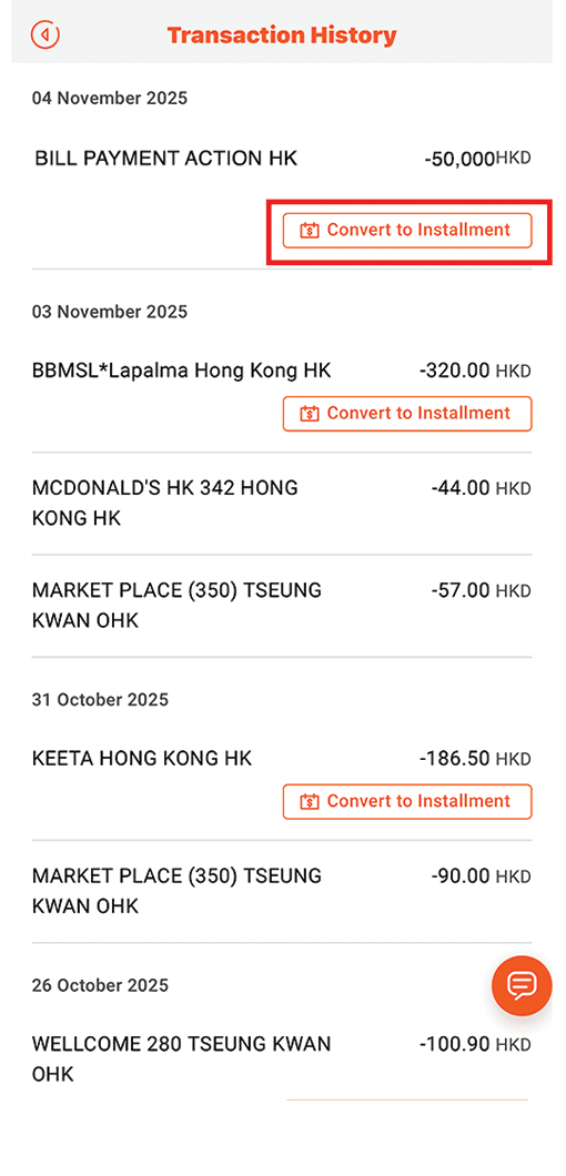 Click “Cards”> “Credit Card/Debit Card Overview” > “Transaction History”