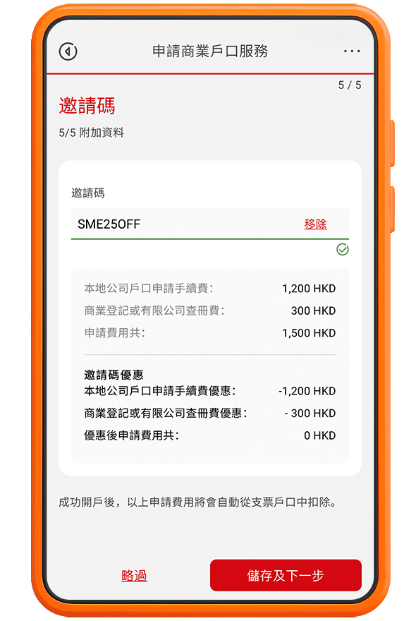 由即日至2025年12月31日(包括首尾兩天) ,全新中小企業客戶憑邀請碼「IMSMEA50」經商務動感銀行開立商業戶口可獲減免50%開戶費及公司查冊費。